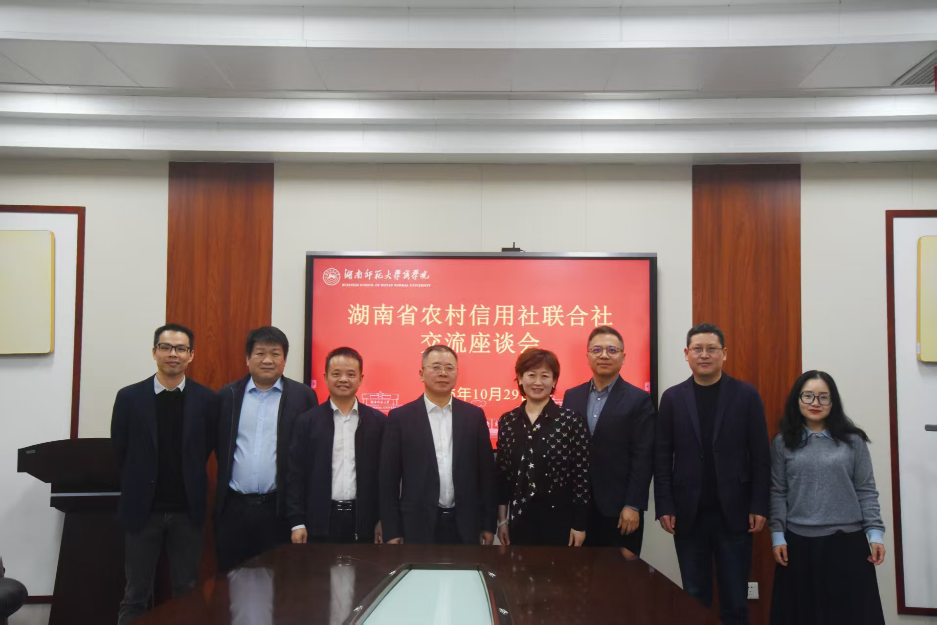 10 月 29 日下午,湖南省农村信用社联合社党委副书记刘胜军率队来公司开展交流座谈。省农村信用社联合社党委组织部部长樊杰,公司副经理曹虹剑、李红权出席座谈,公司党委书记龚舒主持会议。