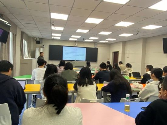 在第三个环节,周浩然和张祺向实验班同学分享了经济学学习、研究、竞赛等方面的经验。周浩然建议同学们首先要想明白自己在大学里最想追求的目标,其次他强调了日常学习中扎实掌握基础知识、勤奋以及坚持重要性。关于竞赛,他建议同学们选择参加与学科相关且重要的竞赛,而不是什么竞赛都参加。张祺则从自身经历出发,讲述了自己如何从大二下学期结束的寒假开始在老师指导下开始目前的这项研究。分享了她在面对繁杂的课业压力与研究过程中的困难时,如何将复杂的事情化繁为简,她还特别强调了同老师及同学们保持及时交流的重要性。