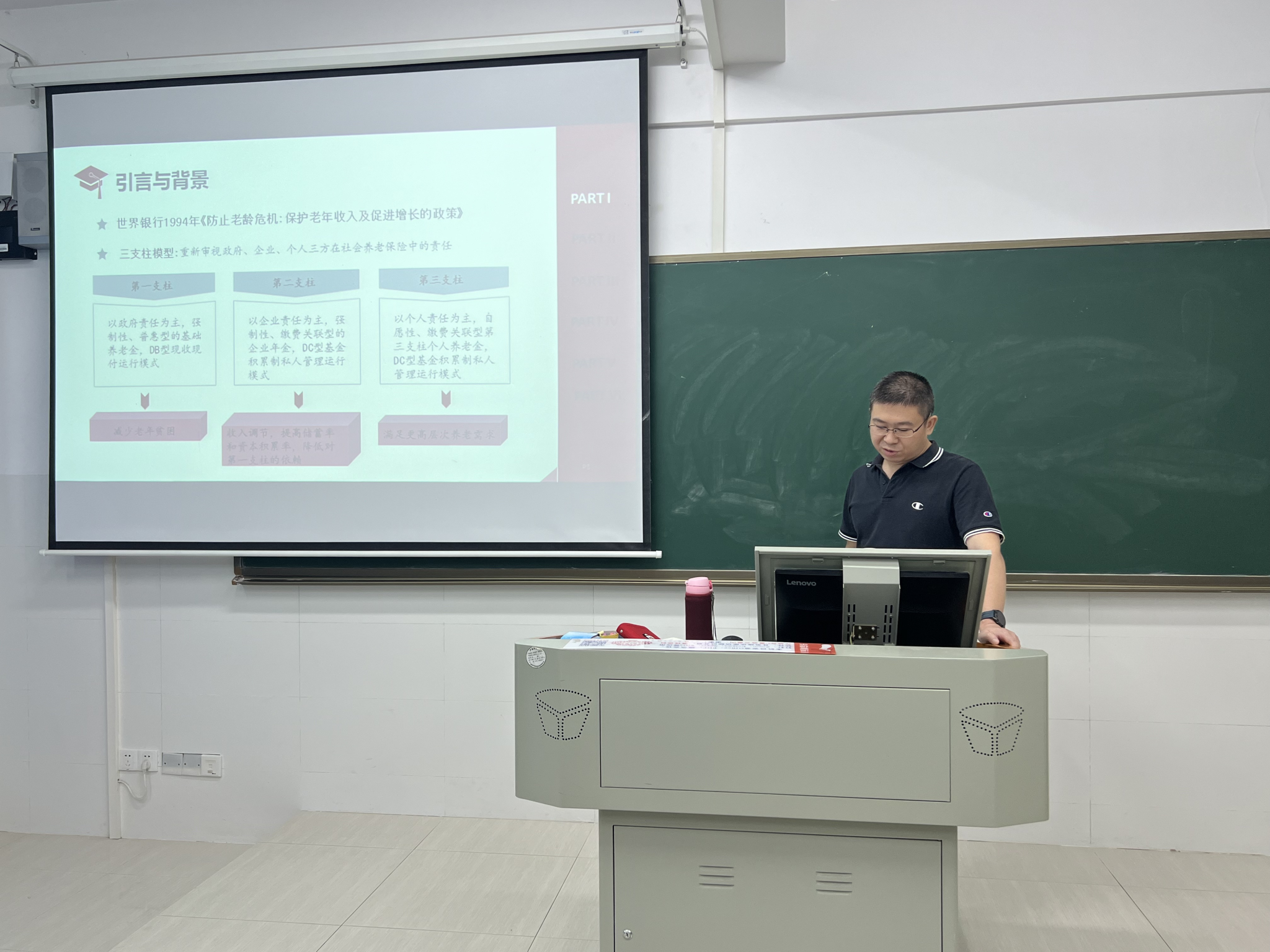 黄磊以“多支柱养老保险理论演变与实践发展”为题进行汇报。深入阐述了该理论的发展历程,分析其在不同国家的实践应用,并探讨了未来养老保险制度发展的模式。黄磊特别提到了三支柱模型——政府、企业、个人,强调这一模型为养老保险制度提供了创新思路,并对其未来的应用和发展方向进行了展望。