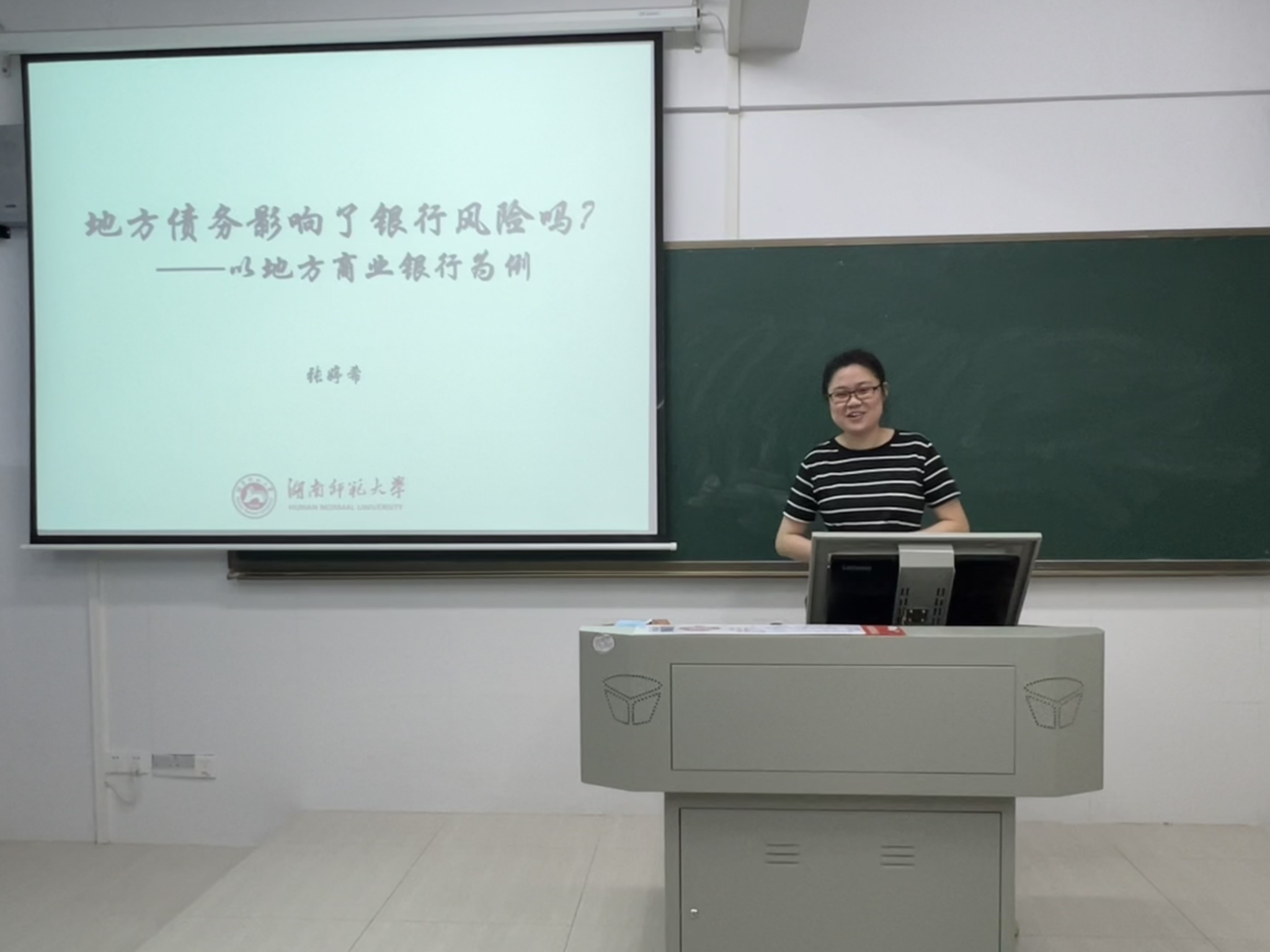 张婷希以“地方债务影响了银行风险吗?——以地方商业银行为例”为题进行汇报。她以地方债务给实力较弱的地方商业银行带来的风险为例,分别从银行的表内信贷渠道以及表外影子银行渠道两方面来研究地方债务对地方商业银行不同风险的影响。结果表明,地方债务的扩张不仅加剧了地方商业银行的流动性风险,还使地方商业银行承受了较大的信贷风险。同时,表外影子银行渠道的发展也支撑了地方债务的膨胀,并对地方商业银行系统性风险产生影响。