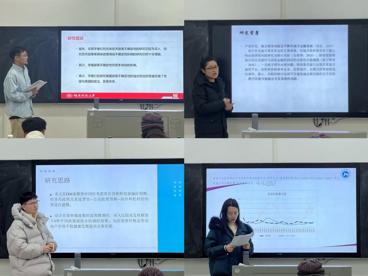 (通讯员 杜梓郁)1月8日下午,公司于中和楼320教室举办第9期经济学博士专场workshop学术报告会。2019级博士研究生欧阳曜亚、2020级博士研究生许涛、杨济海、2021级博士研究生张婷希作主题报告,汤凌霄教授和罗富政副教授出席了此次报告会。
