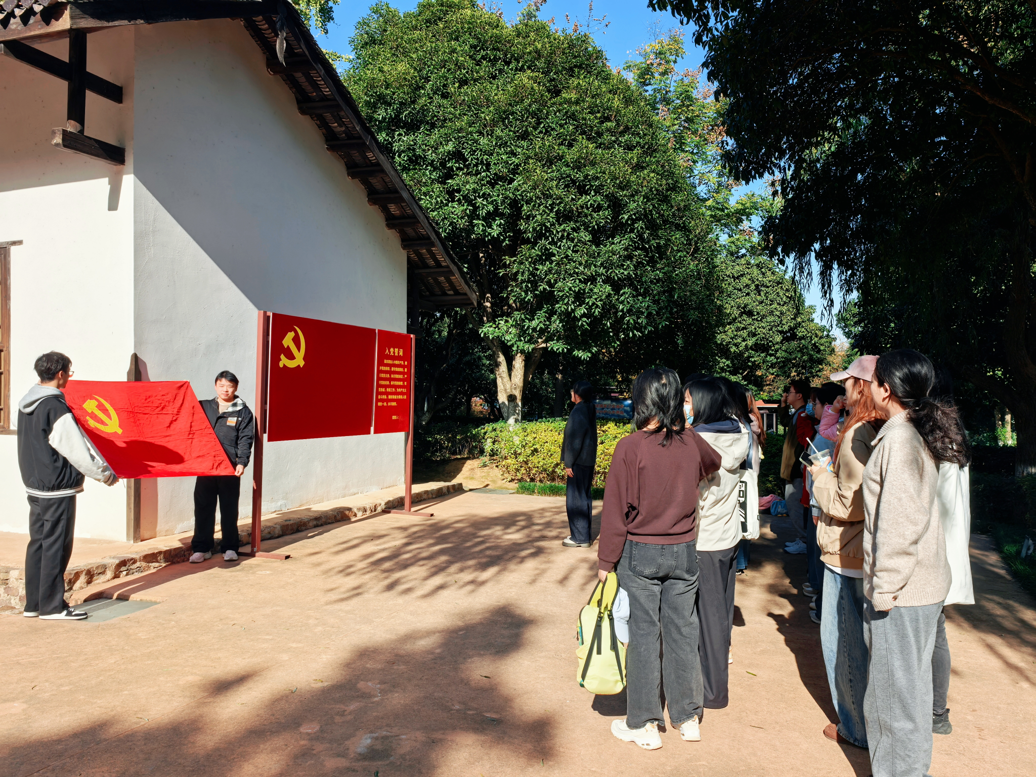 参观前,支部全体党员在故居前的广场上整齐列队,面向鲜红的党旗庄严举起右拳,重温入党誓词。“我志愿加入中国共产党,拥护党的纲领,遵守党的章程……” 铿锵有力的誓言回荡在红色热土上,既是对革命先烈的深切缅怀,也是对初心使命的再次叩问。