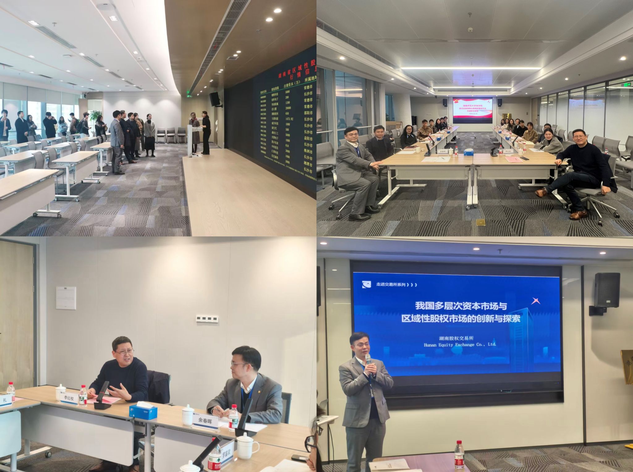 12月11日下午,公司组织师生代表赴湖南省股权交易所,开展“建设金融强国”主题调研暨研究生党建移动课堂。本次活动由副经理李红权教授、研究生办主任暨研究生党支部第一书记龙梅老师带队,研究生党支部党建导师袁礼教授、罗富政副教授、金融硕士中心主任甘顺利、研究生办干事李思颖、王诗婕及9名博硕士研究生代表参加。