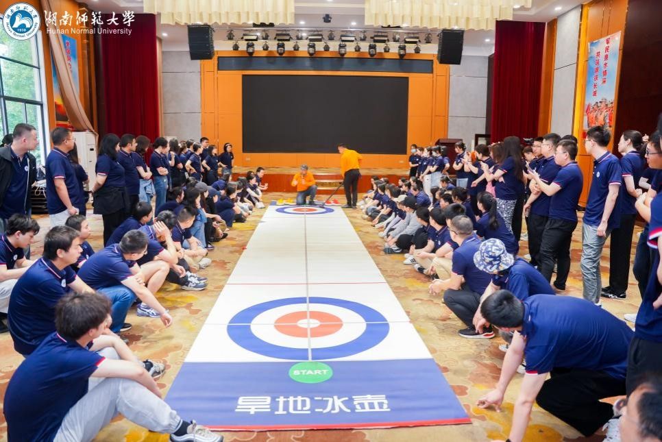 由于采用小组循环赛,八支队伍之间彼此都有比拼,服从大局,绝不服输,无论是会玩冰壶还是不会玩的同学,都在团队需要之时毫不犹豫上阵,这也相当考验各个团队排兵布阵的能力。