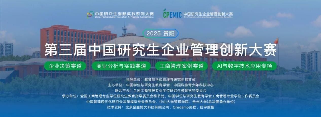 “中国研究生企业管理创新大赛”是“中国研究生创新实践系列大赛”主题赛事之一,由教育部学位管理与研究生教育司指导,中国学位与研究生教育学会、中国科协青少年科技中心主办,全国工商管理专业学位研究生教育指导委员会联合主办。第三届中国研究生企业管理创新大赛以“实践创新,融合创新”为导向,设有“企业决策赛道”、“商业分析与实践赛道”、“工商管理案例赛道”与“AI与数字技术应用专项”四个赛道。自2025年8月启动以来,本届大赛共吸引全国321家公司产品单位的4176支队伍、超18000名师生报名参赛。本届大赛总决赛由贵州大学承办,共有来自全国150所高校的411支队伍晋级全国总决赛。