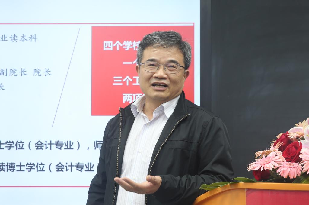 王善平以《对接国家经济社会热点的会计学研究》为主题,以“产权保护、组织治理和会计审计创新”为核心内容,结合先后主持的国家级项目5项,省部级重点项目10余项,瞄准国家经济社会发展中的热点、重点和难点对会计学的新要求,从学会计、教会计(研究篇)、教会计(教学篇)、管会计以及感悟等方面进行汇报,并分享了会计教学、会计管理等方面的心得和体会。