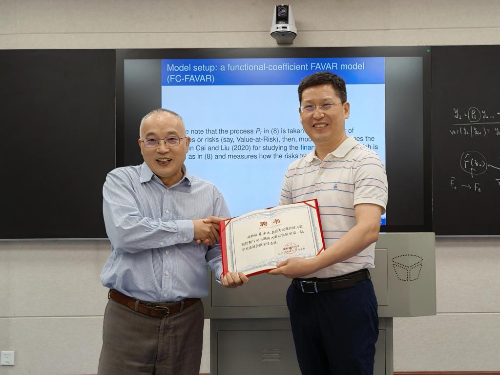主讲人简介:蔡宗武,美国堪萨斯大学经济系Charles Oswald Distinguished(杰出)教授,厦门大学王亚南经济研究院特聘教授。主要研究领域为理论和应用计量经济学、经济分析和政策评估、金融计量学、金融与经济大数据分析建模等多个领域。担任多家国际一流经济学、数据科学和统计学以及金融学期刊的副主编,同时也是美国统计协会Fellow 和《Journal of Econometrics》的Fellow。他在国际计量经济学、统计学以及数据科学领域有很高的影响力,在计量经济学和统计学领域,具有国际领先地位的学术造诣。曾担任“中国留美经济学会”会长,为中国数量经济学、金融学和统计学科的建设和发展以及人才的培养做了大量实质性的工作,多次担任国际重要学术会议组织者,为中国内地高校更好地开展国际学术交流做出了突出贡献。