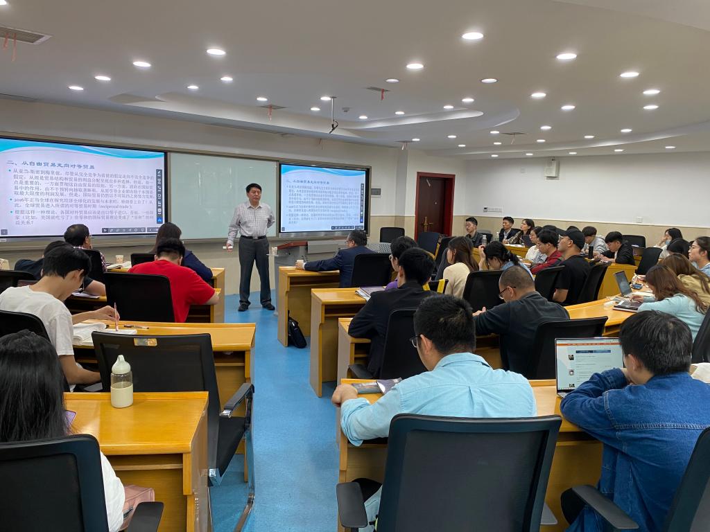 主讲人简介:佟家栋,现任南开大学讲席教授。毕业于南开大学经济系,获经济学博士。曾任南开大学WTO研究中心主任,研究生院经理,副董事长。2011年聘为南开大学杰出教授,2020年聘为南开大学讲席教授(院士级教授)。担任教育部国际商务教学指导委员会副主任委员,教育部国际经济与贸易教学指导委员会副主任委员,中国世界经济学会副会长,中国欧洲学会副会长。系“百千万人才工程”国家级人选,教育部“长江学者”特聘教授,国家教学名师,享受国务院政府特殊津贴专家。在《经济研究》《世界经济》等期刊发表系列论文,获天津市哲学社会科学优秀成果奖一等奖2项,获安子介国际贸易学科优秀论文奖2项。
