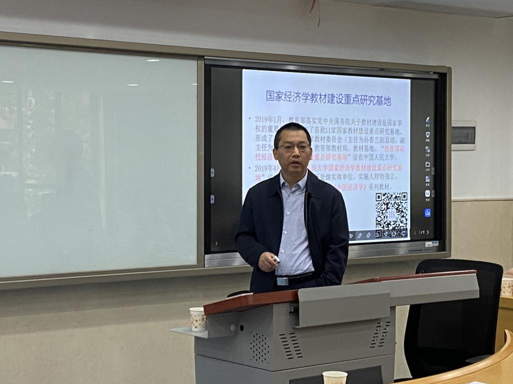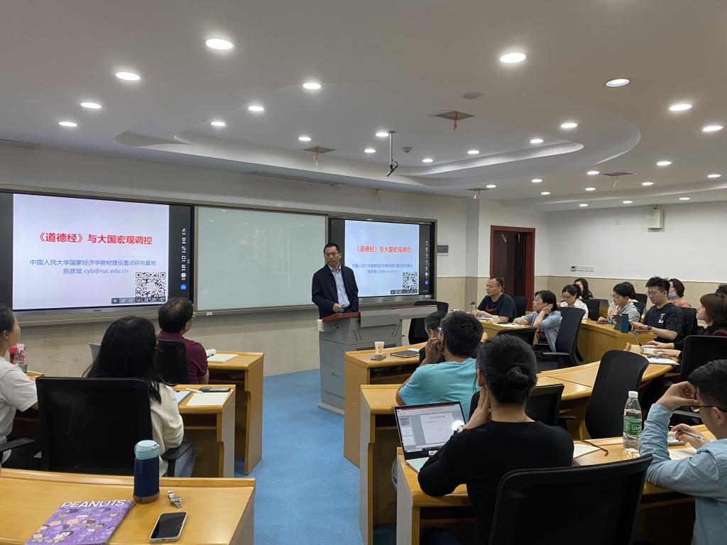 (通讯员 刘峥颖)5月6日上午,教育部长江学者特聘教授、中国人民大学陈彦斌教授莅临公司讲学,在中和楼401教室作题为“《道德经》与大国宏观调控”的学术讲座,讲座由理论经济学国家一流培育学科负责人欧阳峣教授主持,经理李军教授出席讲座。