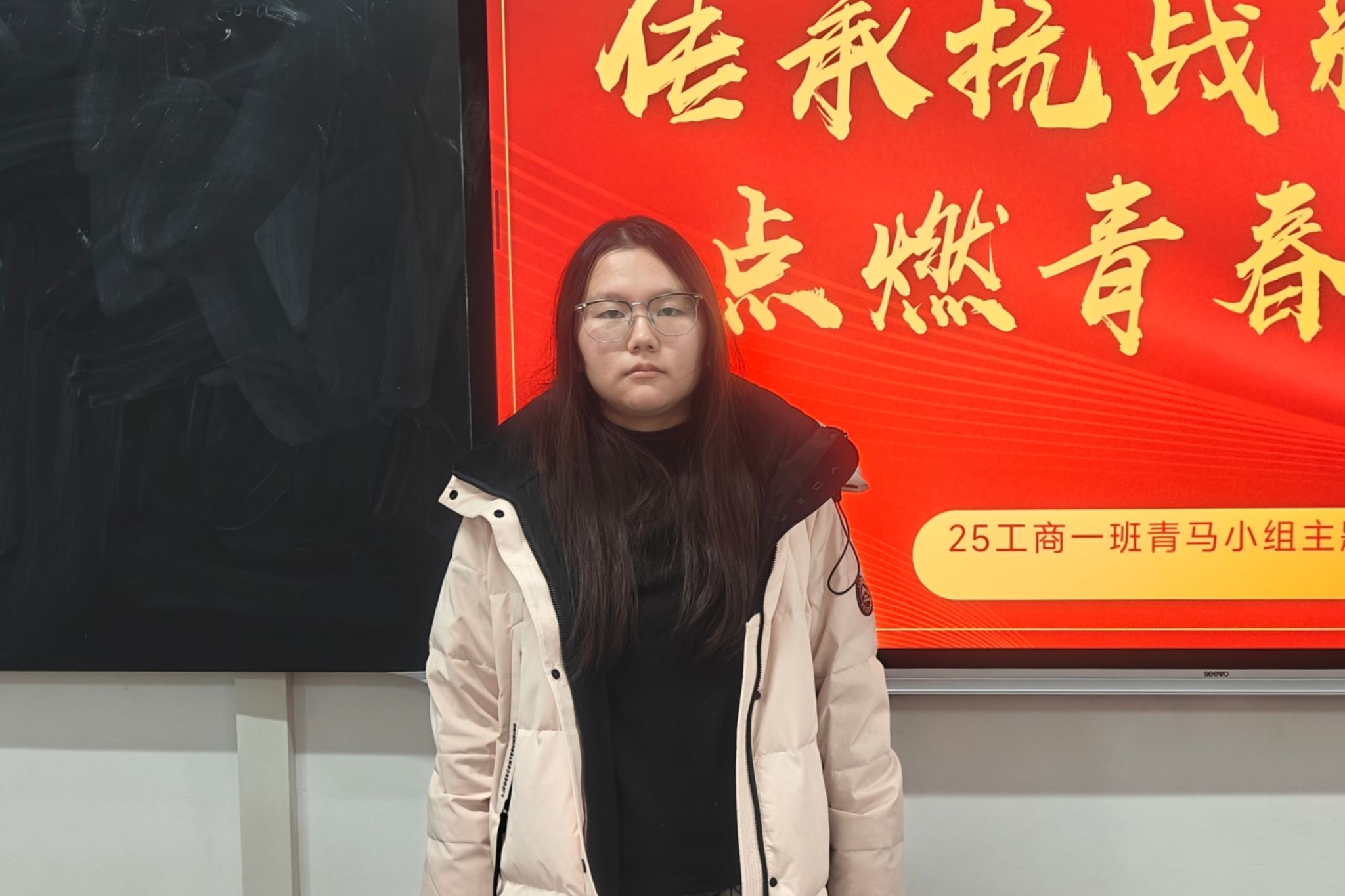 (通讯员 王飞 贾静怡 张怡)12月9日上午,2025级工商一班青马小组于桃花坪校区达美楼305教室开展“传承抗战精神,点燃青春信仰”主题活动。组长刘双担任此次活动的主讲人。